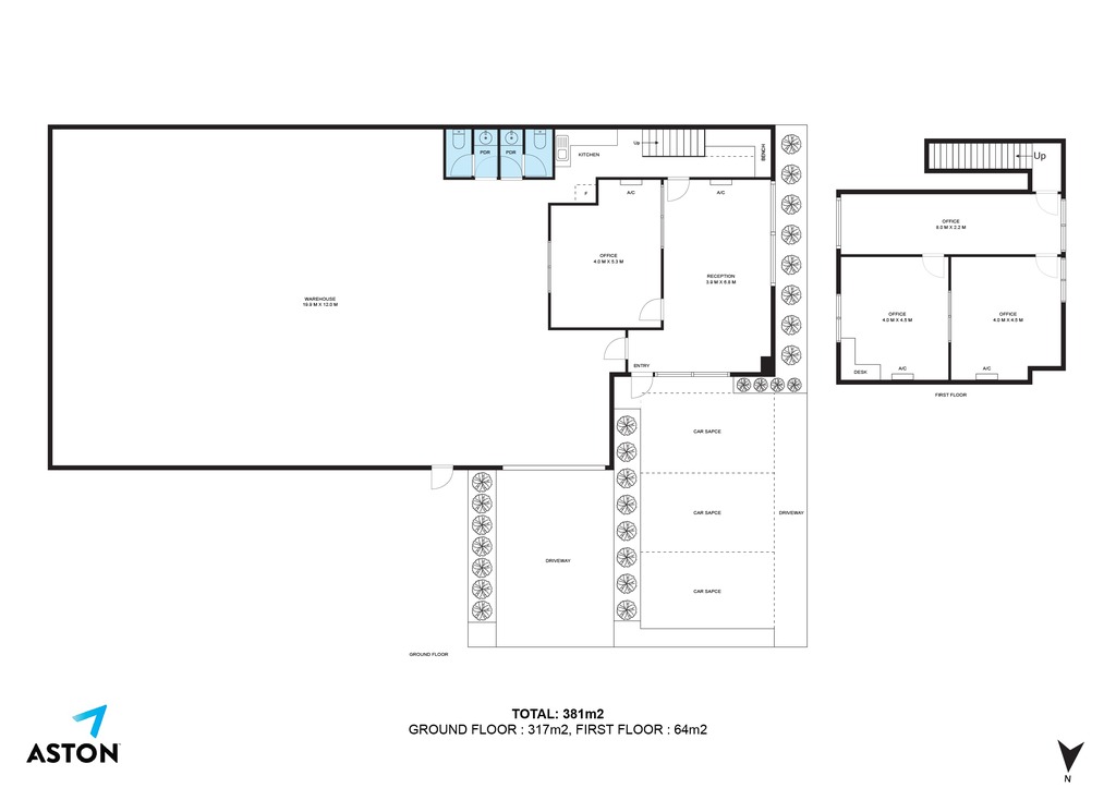 • Total building area of 381m²*