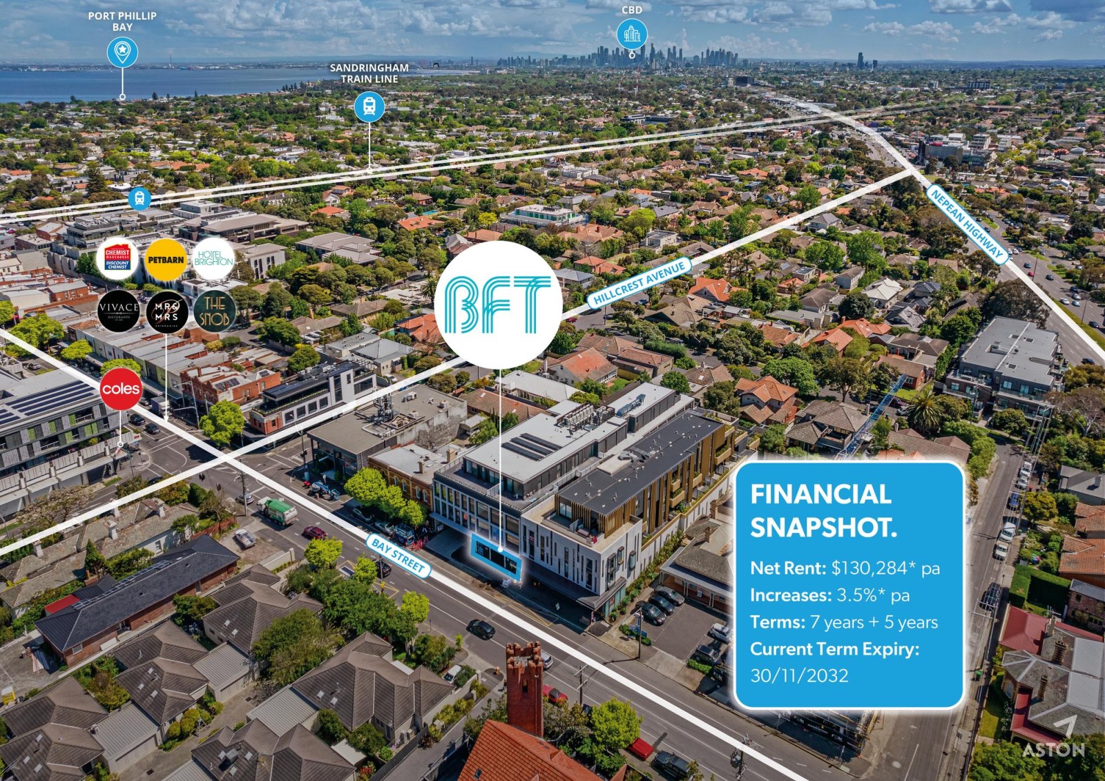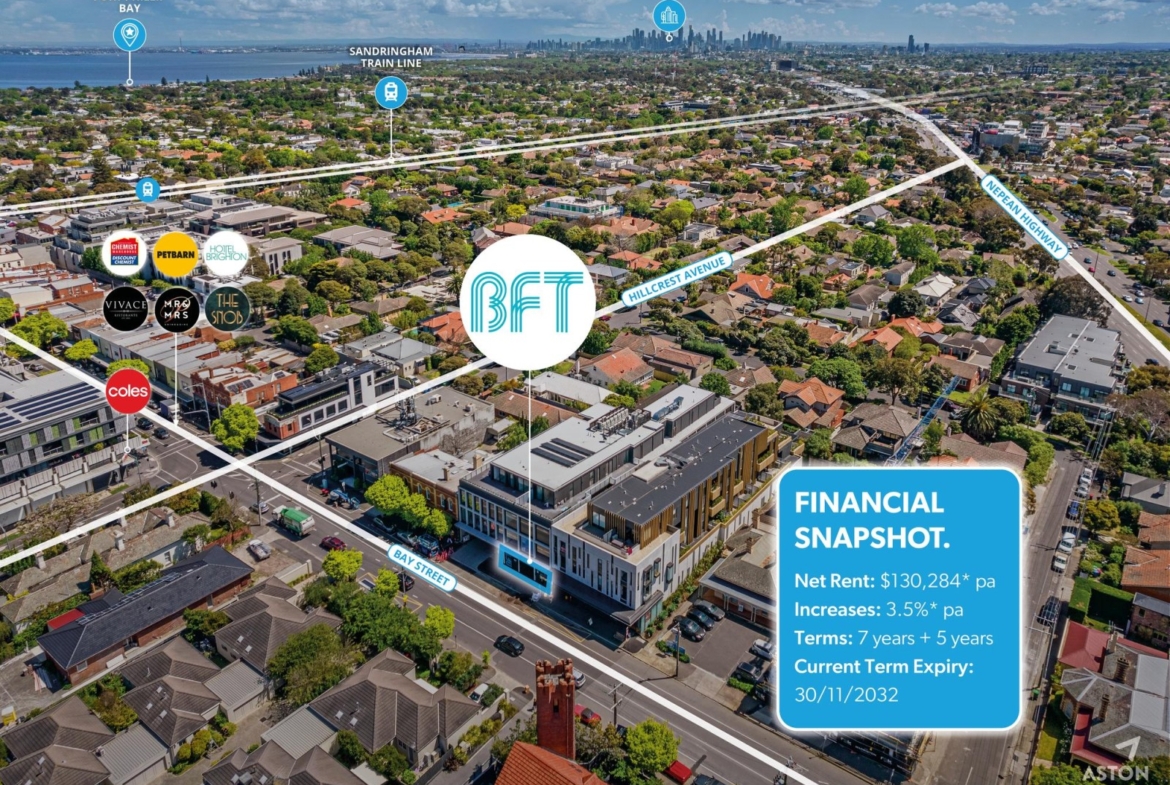 Right in the thick of Bay Street Brighton’s buzzing retail strip, this property enjoys a prime position amongst national brands, cafés and everyday amenity. With direct access to Nepean Highway and effortless links to the CBD and bayside, it combines exposure, convenience and affluent local demographics – making it a standout retail and lifestyle address.
