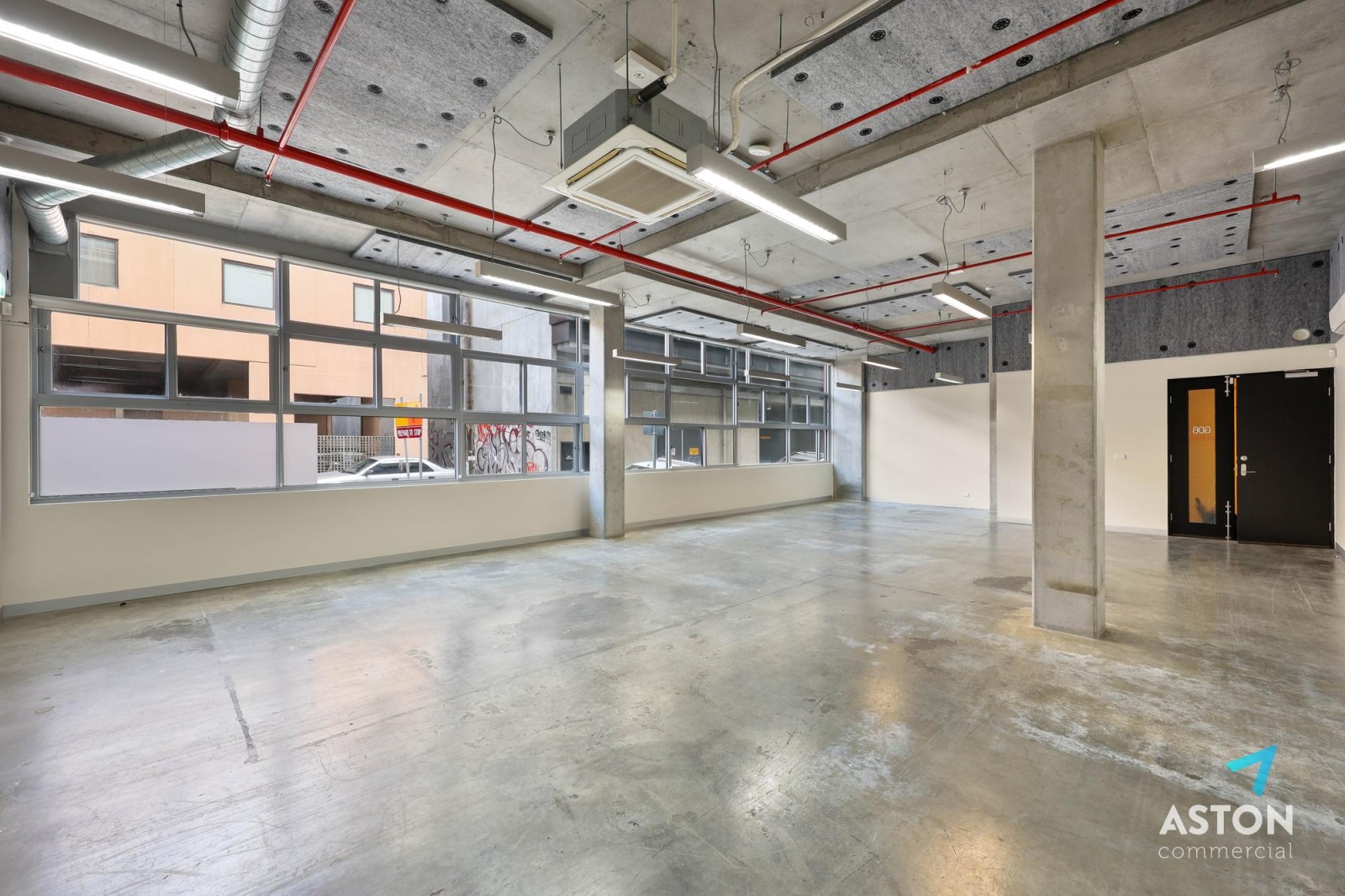 • Exposed ceiling with polished concrete floors